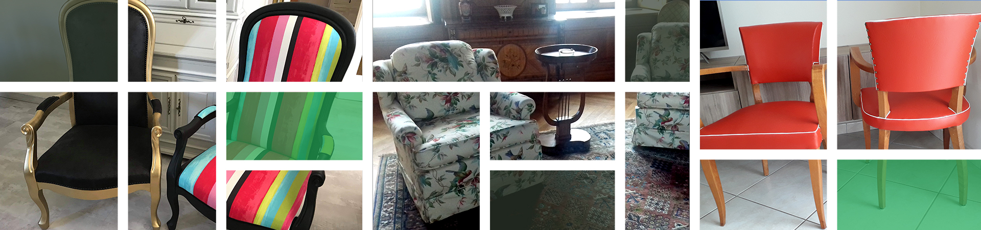 Découvrez notre galerie de photos pour avoir un aperçu sur nos diverses réalisations en restauration de fauteuils et canapés ainsi qu’en réfections de chaises et de coussins.